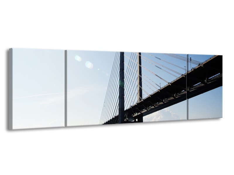 Glasschilderij Brug, Natuur | Grijs, Blauw, Zwart | 170x50cm 3Luik