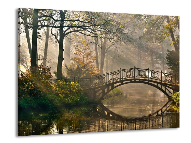 Glasschilderij Brug, Natuur | Grijs, Groen, Bruin | 100x70cm 1Luik