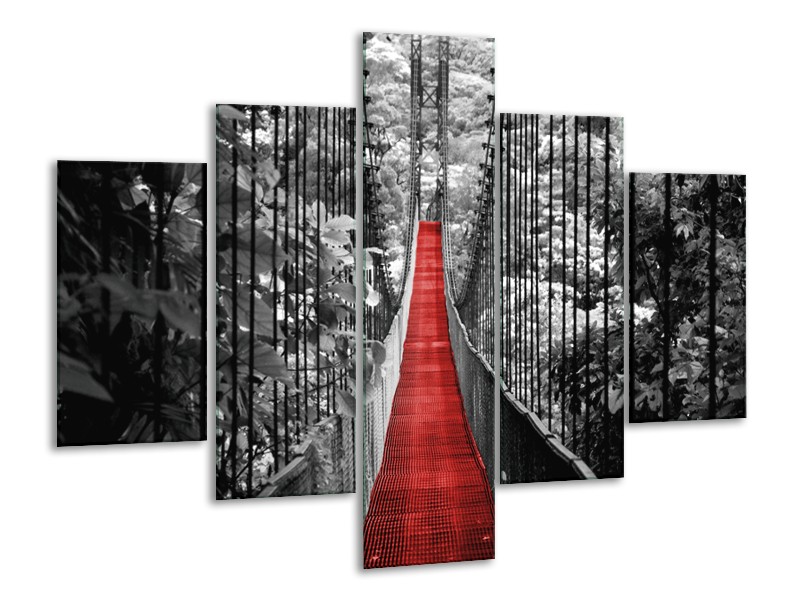 Glasschilderij Brug, Natuur | Zwart, Wit, Rood | 100x70cm 5Luik