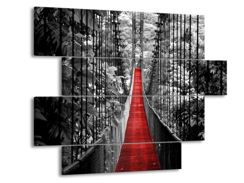 Glasschilderij Brug, Natuur | Zwart, Wit, Rood | 115x85cm 4Luik