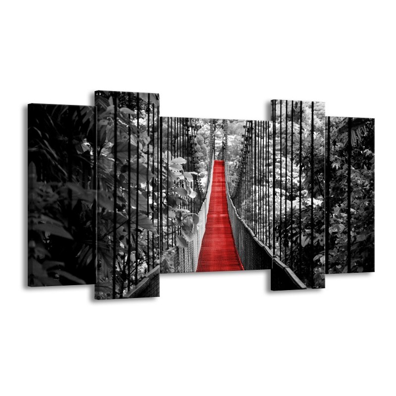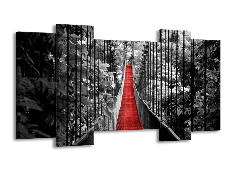 Glasschilderij Brug, Natuur | Zwart, Wit, Rood | 120x65cm 5Luik