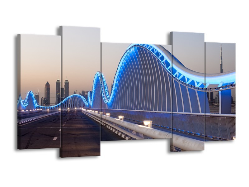 Glasschilderij Brug, Steden | Blauw, Grijs | 120x65cm 5Luik