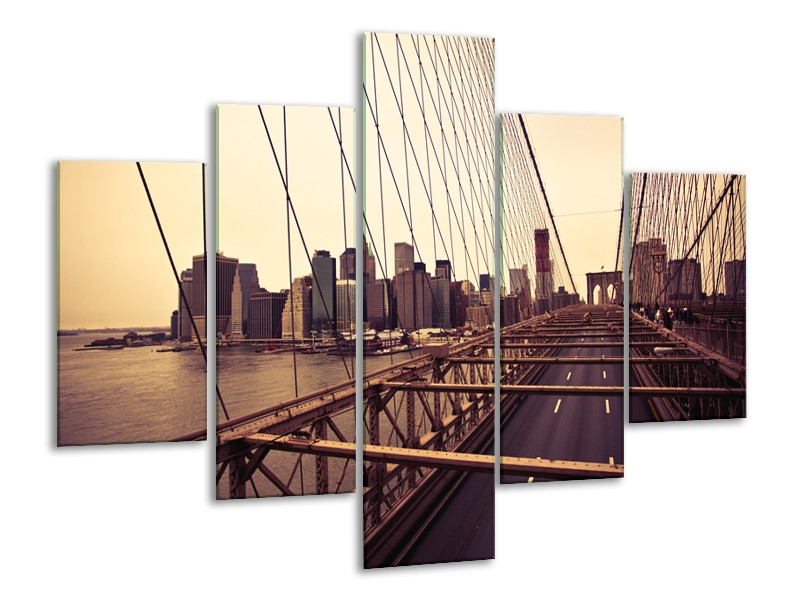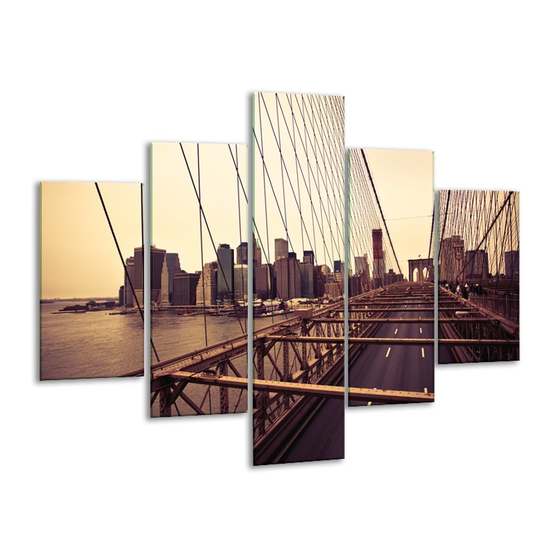 Glasschilderij Brug, Steden | Bruin, Crème | 100x70cm 5Luik