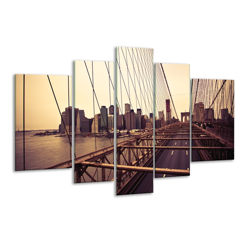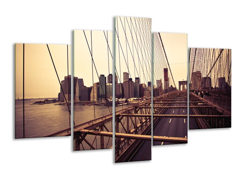 Glasschilderij Brug, Steden | Bruin, Crème | 170x100cm 5Luik