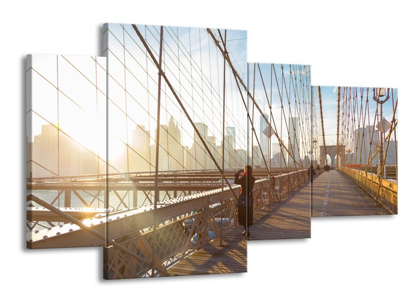 Glasschilderij Brug, Steden | Grijs, Blauw, Bruin | 120x75cm 4Luik