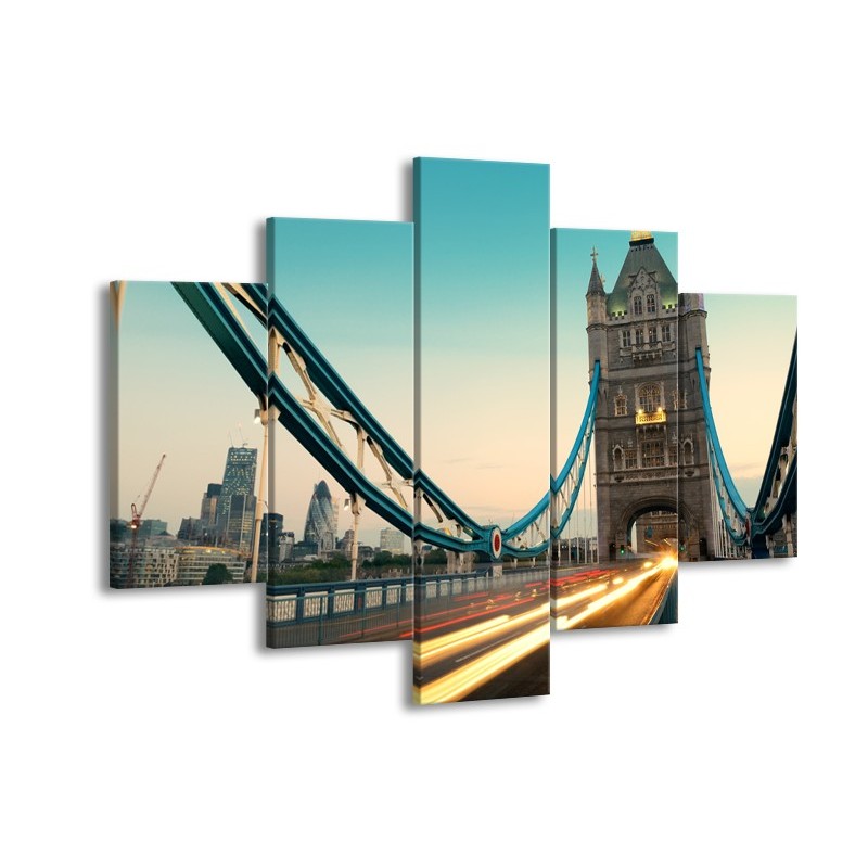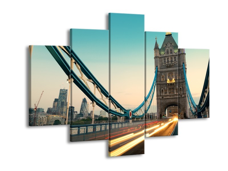 Glasschilderij Brug, Steden | Grijs, Blauw, Geel | 150x105cm 5Luik