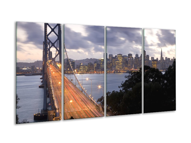 Glasschilderij Brug, Steden | Grijs, Bruin, Zwart | 160x80cm 4Luik