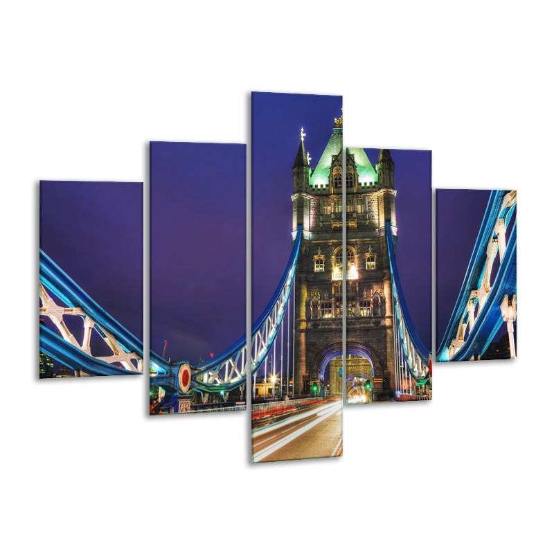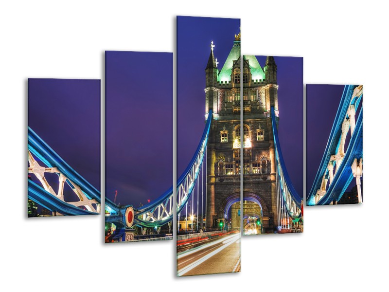 Glasschilderij Brug, Steden | Pars, Blauw, Bruin | 100x70cm 5Luik