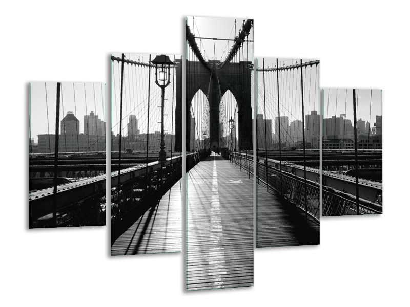 Glasschilderij Brug, Steden | Zwart, Wit, Grijs | 100x70cm 5Luik