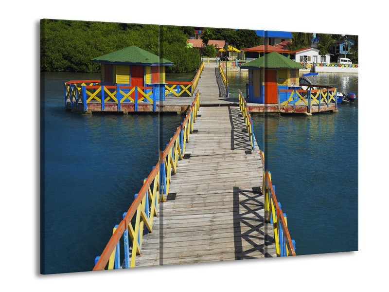 Glasschilderij Brug, Water | Blauw, Grijs, Geel | 60x90cm 3Luik
