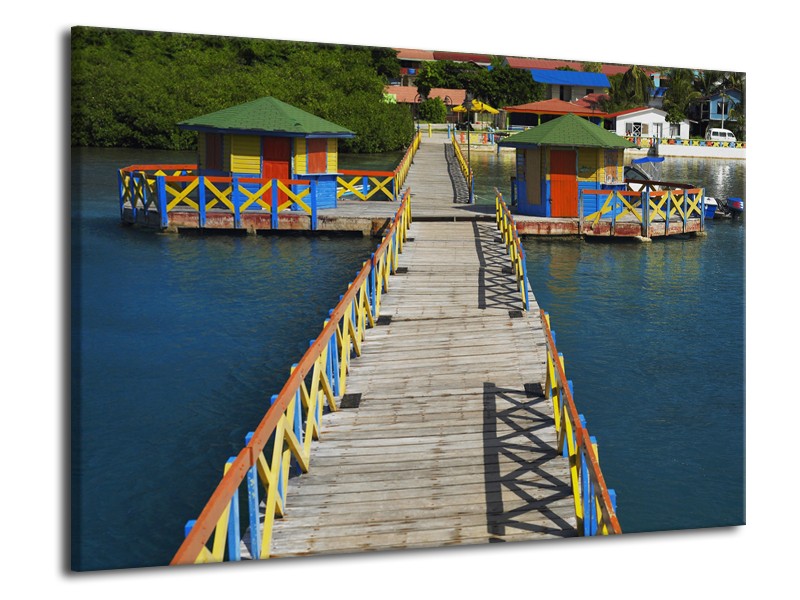 Glasschilderij Brug, Water | Blauw, Grijs, Geel | 70x50cm 1Luik