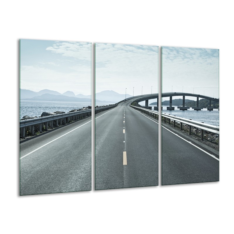 Glasschilderij Brug, Weg | Grijs, Blauw | 120x80cm 3Luik