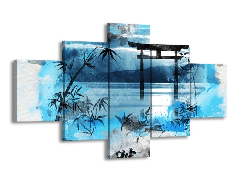 Glasschilderij Chinese Poort | Blauw, Grijs, Zwart | 125x70cm 5Luik