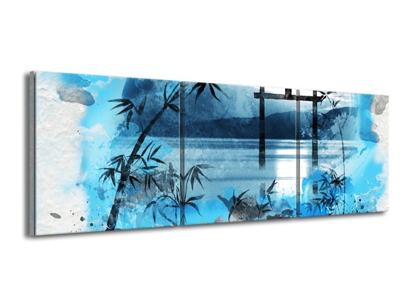 Glasschilderij Chinese Poort | Blauw, Grijs, Zwart | 150x50cm 3Luik
