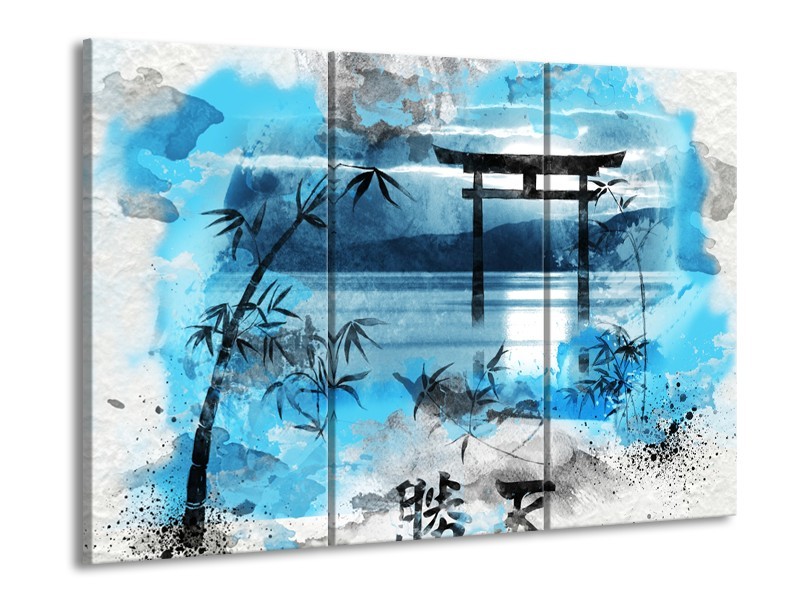 Glasschilderij Chinese Poort | Blauw, Grijs, Zwart | 60x90cm 3Luik