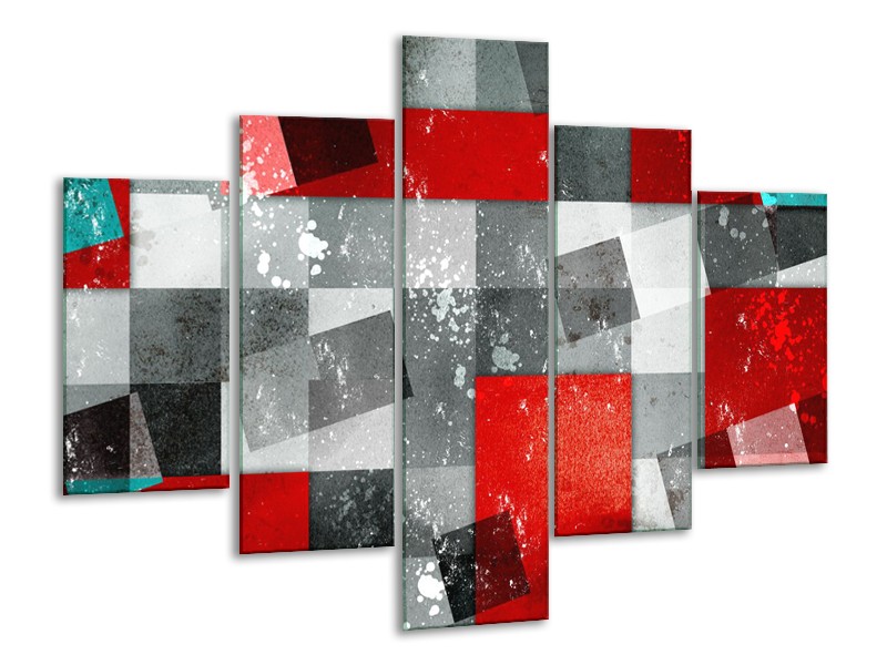 Glasschilderij Design | Grijs, Rood | 100x70cm 5Luik