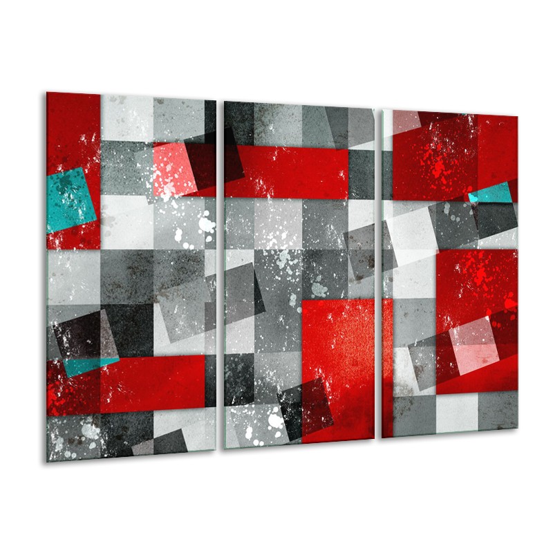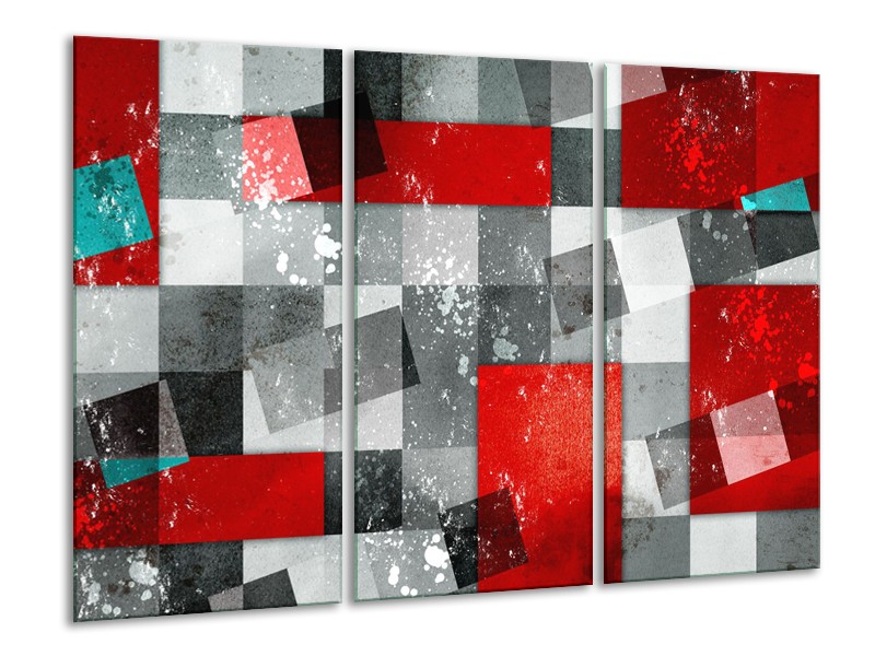 Glasschilderij Design | Grijs, Rood | 120x80cm 3Luik