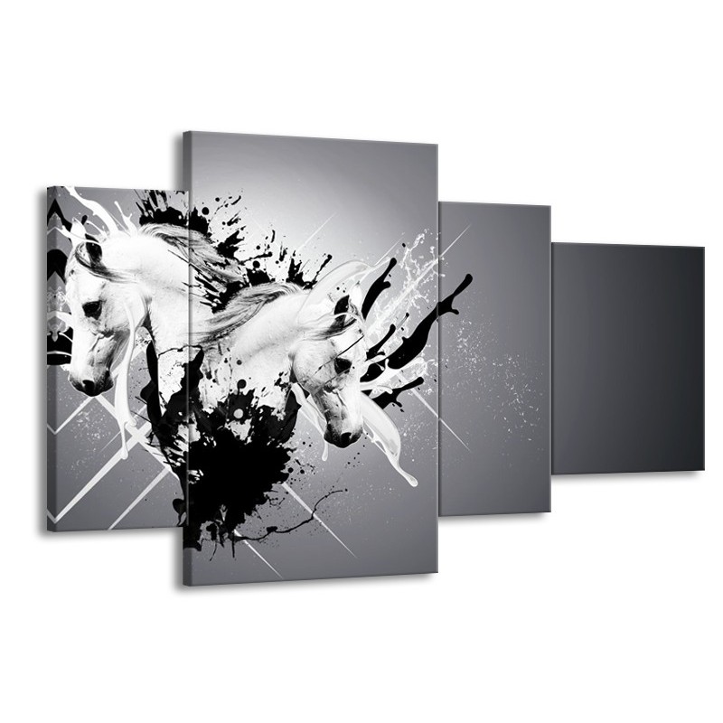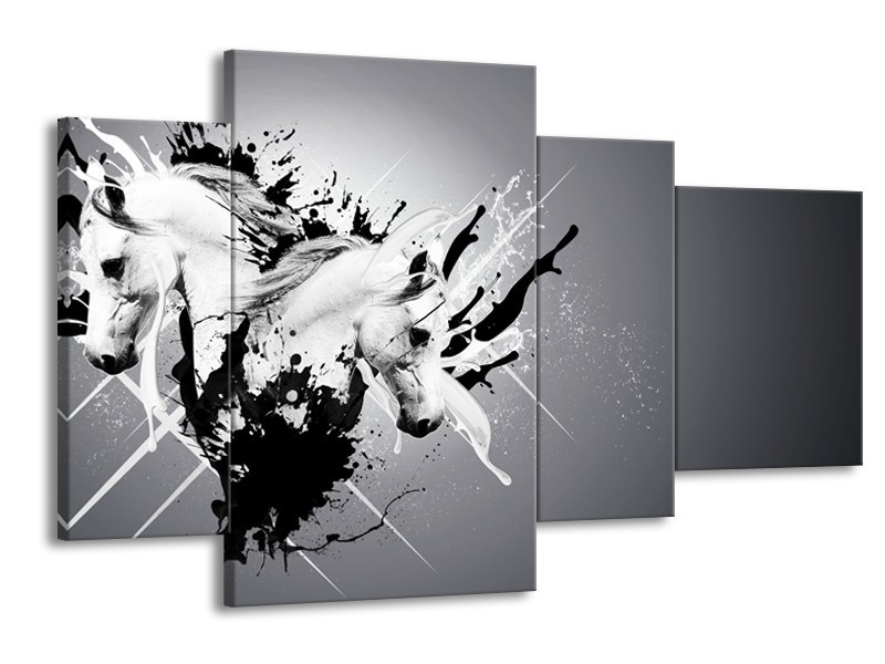 Glasschilderij Design, Paard | Zwart, Wit, Grijs | 120x75cm 4Luik