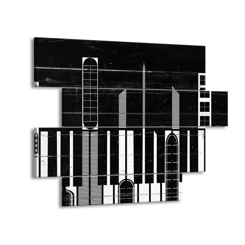 Glasschilderij Design | Zwart, Wit | 115x85cm 4Luik