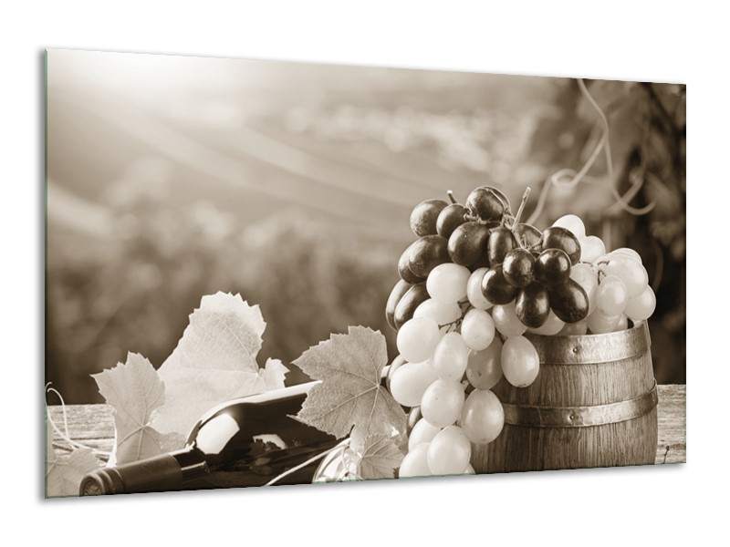 Glasschilderij Druiven, Keuken | Sepia | 120x70cm 1Luik