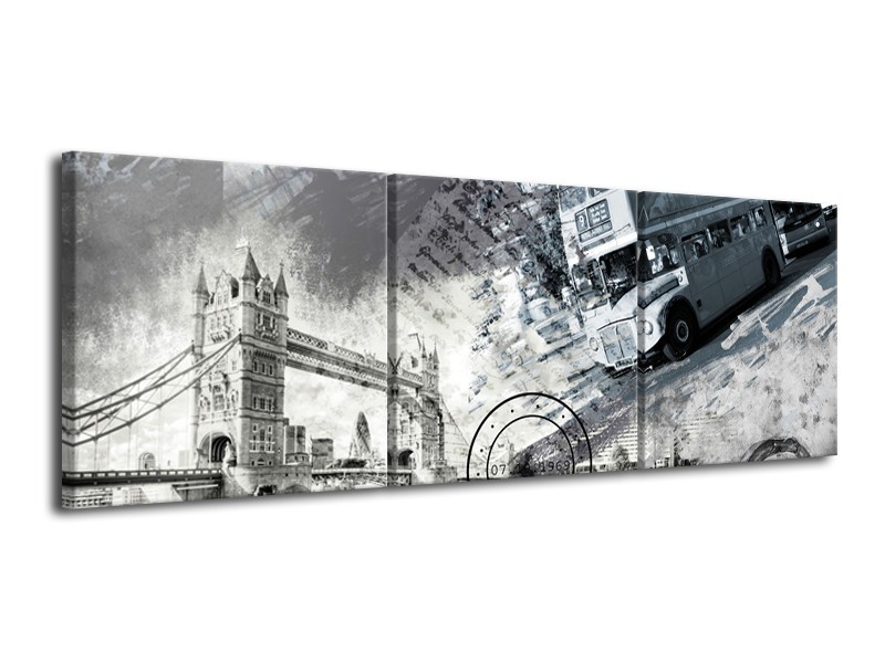 Glasschilderij Engeland, London | Grijs, Crème | 120x40cm 3Luik