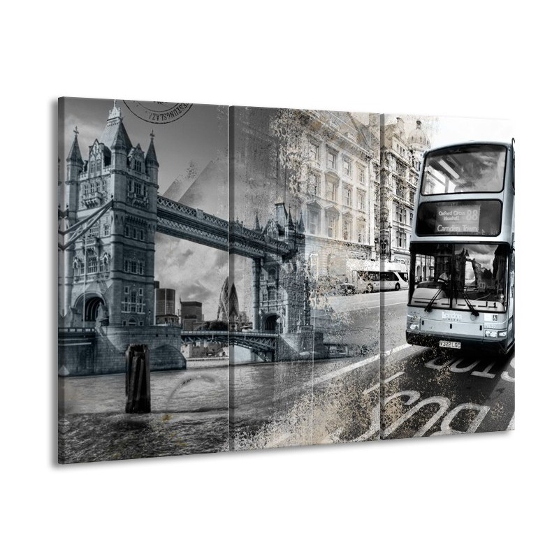 Glasschilderij Engeland, London | Grijs, Crème | 60x90cm 3Luik
