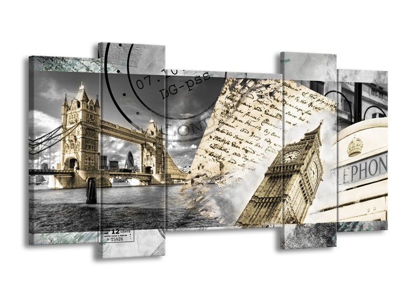 Glasschilderij Engeland, London | Grijs, Crème, Bruin | 120x65cm 5Luik