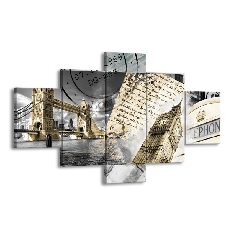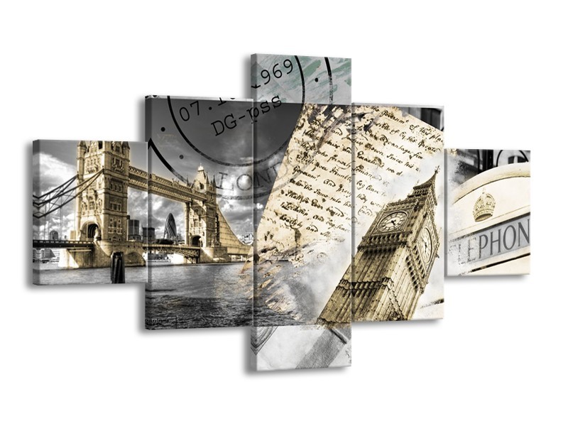 Glasschilderij Engeland, London | Grijs, Crème, Bruin | 125x70cm 5Luik