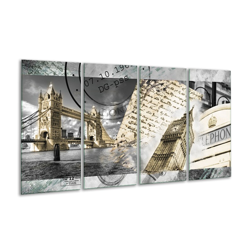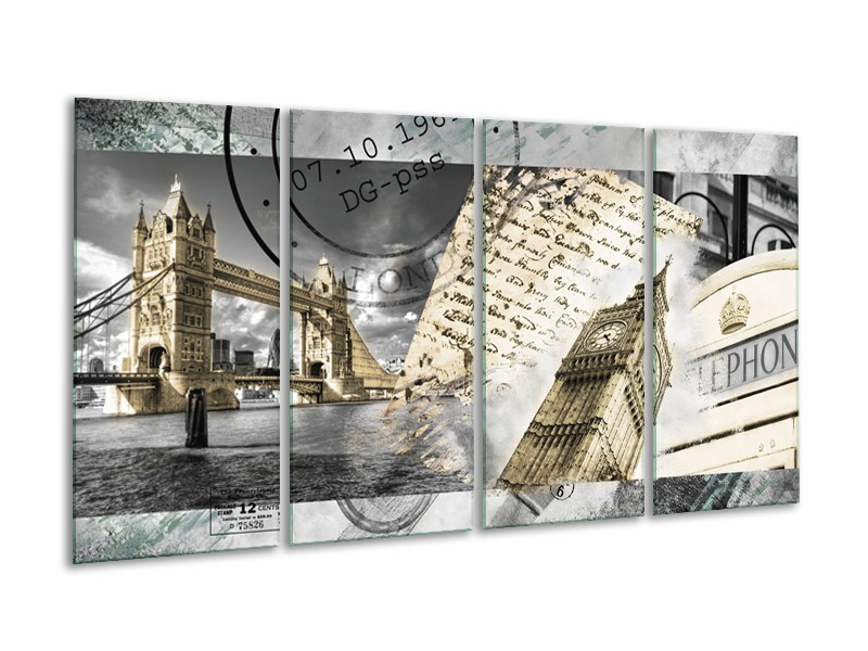 Glasschilderij Engeland, London | Grijs, Crème, Bruin | 160x80cm 4Luik