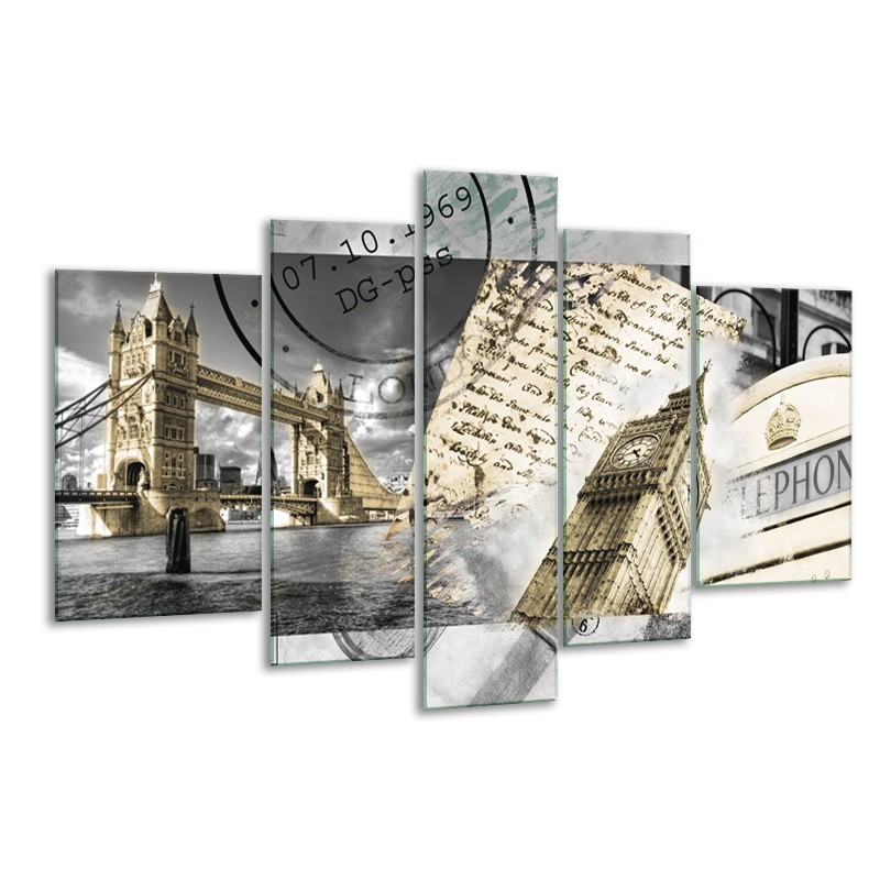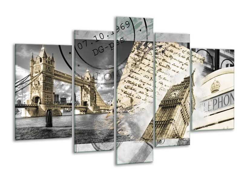 Glasschilderij Engeland, London | Grijs, Crème, Bruin | 170x100cm 5Luik