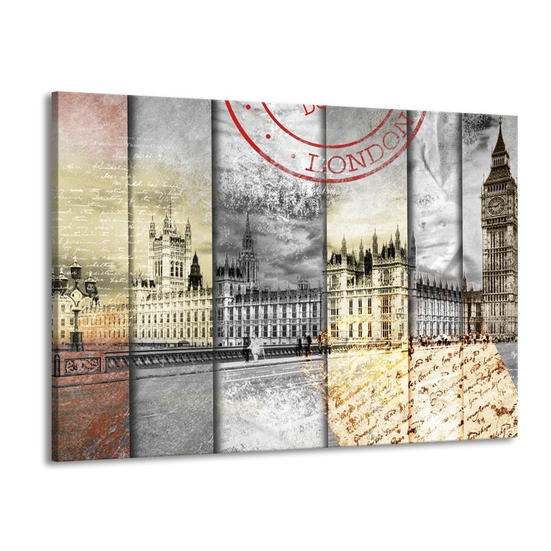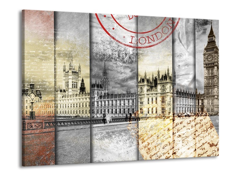 Glasschilderij Engeland, London | Grijs, Crème, Rood | 100x70cm 1Luik