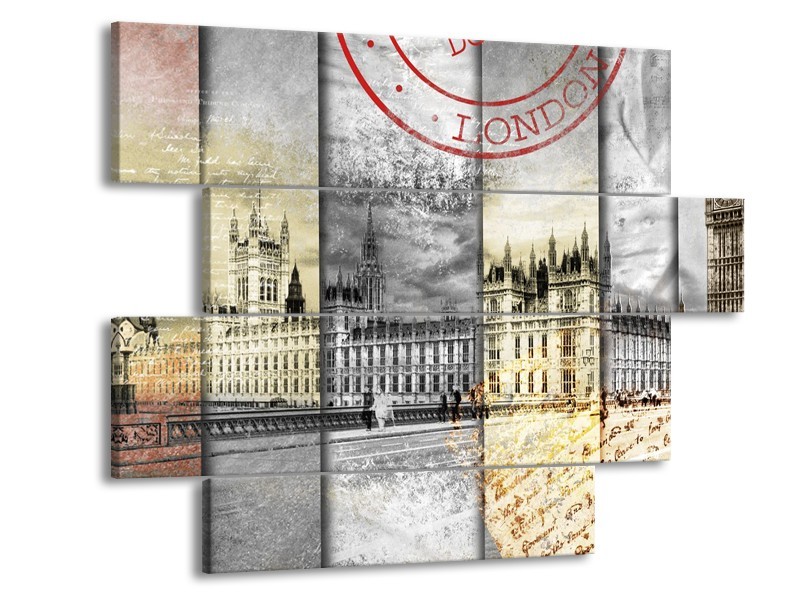 Glasschilderij Engeland, London | Grijs, Crème, Rood | 115x85cm 4Luik