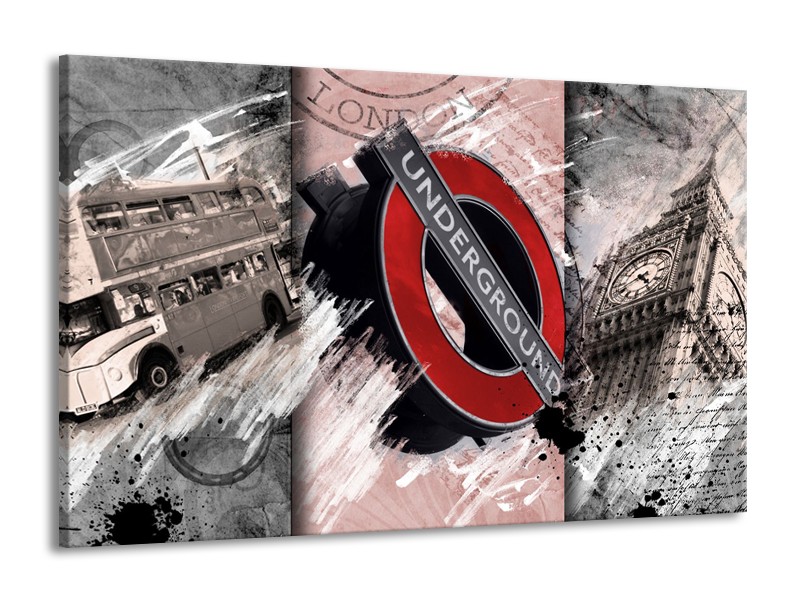 Glasschilderij Engeland, London | Grijs, Crème , Rood | 140x90cm 1Luik