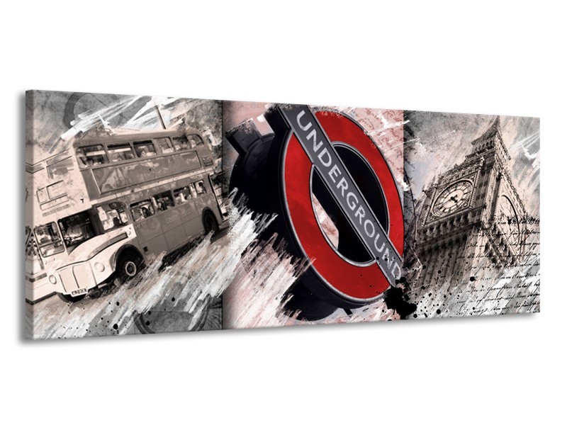 Glasschilderij Engeland, London | Grijs, Crème , Rood | 145x58cm 1Luik
