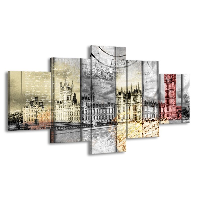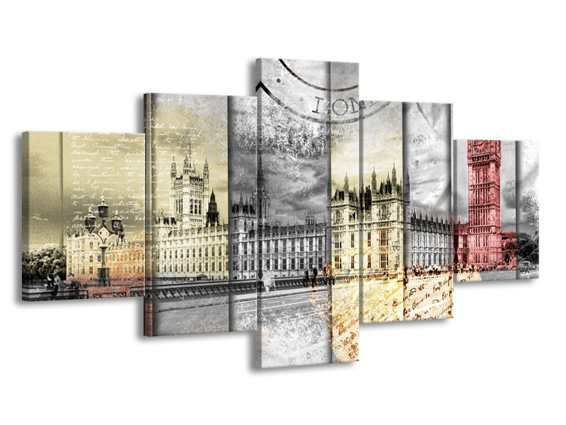 Glasschilderij Engeland, London | Grijs, Crème, Rood | 150x80cm 5Luik