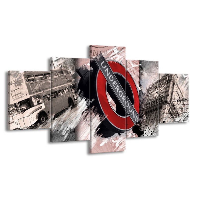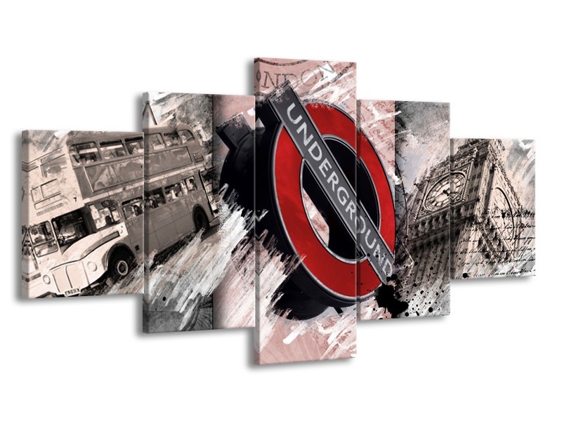 Glasschilderij Engeland, London | Grijs, Crème , Rood | 150x80cm 5Luik