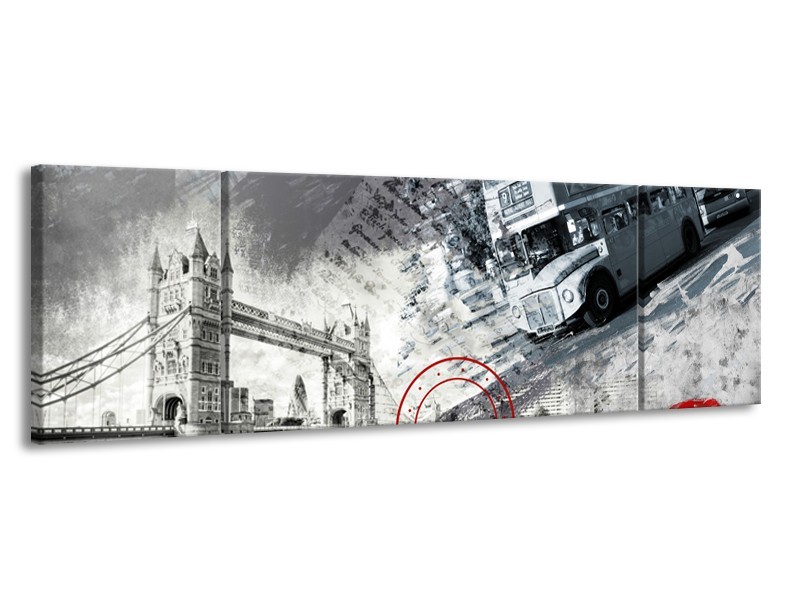 Glasschilderij Engeland, London | Grijs, Crème , Rood | 170x50cm 3Luik