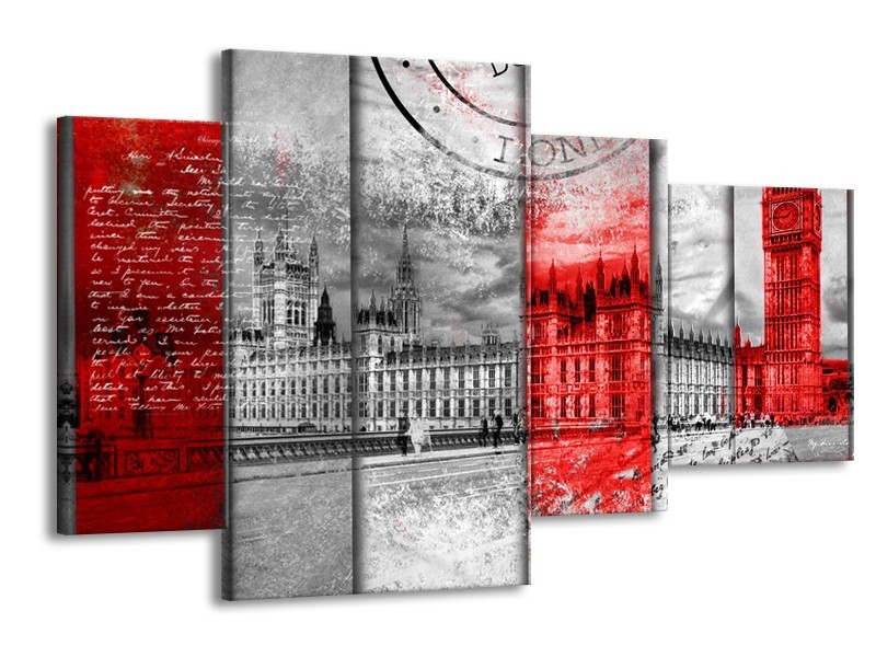 Glasschilderij Engeland, London | Grijs, Rood, Zwart | 120x75cm 4Luik