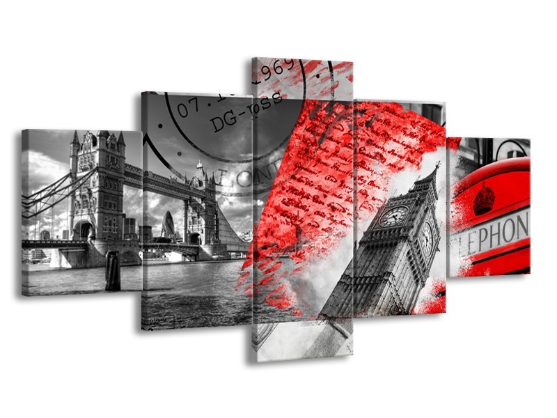 Glasschilderij Engeland, London | Grijs, Rood, Zwart | 150x80cm 5Luik
