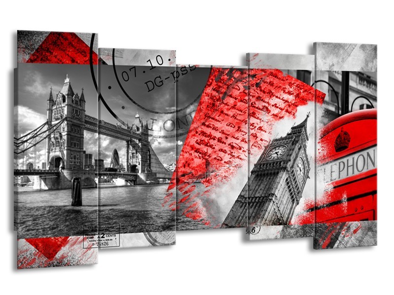 Glasschilderij Engeland, London | Grijs, Rood, Zwart | 150x80cm 5Luik