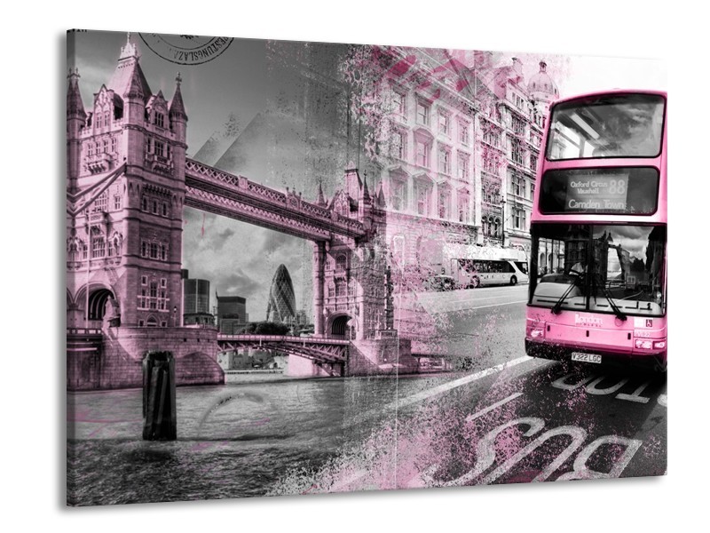 Glasschilderij Engeland, London | Paars, Roze, Grijs | 100x70cm 1Luik