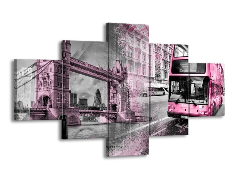 Glasschilderij Engeland, London | Paars, Roze, Grijs | 125x70cm 5Luik