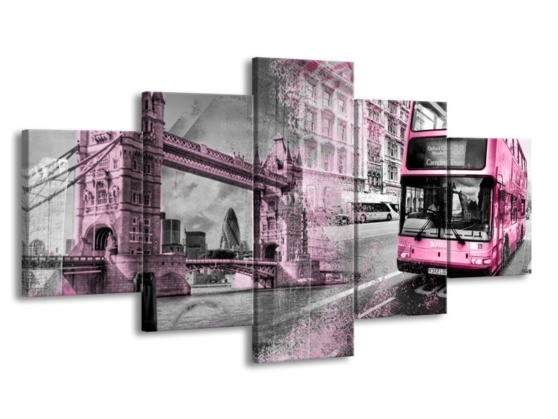 Glasschilderij Engeland, London | Paars, Roze, Grijs | 150x80cm 5Luik