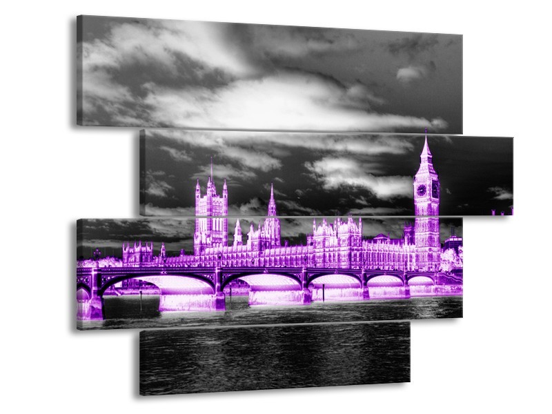 Glasschilderij Engeland, London | Paars, Zwart, Wit | 115x85cm 4Luik