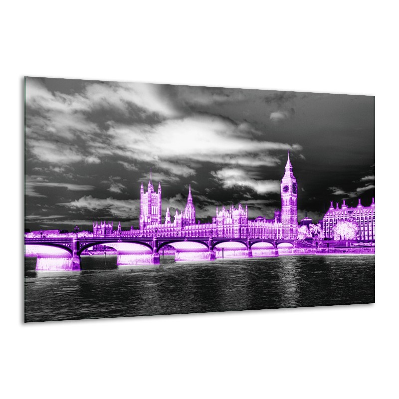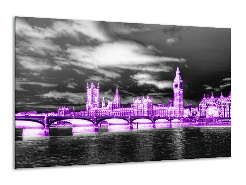 Glasschilderij Engeland, London | Paars, Zwart, Wit | 120x70cm 1Luik