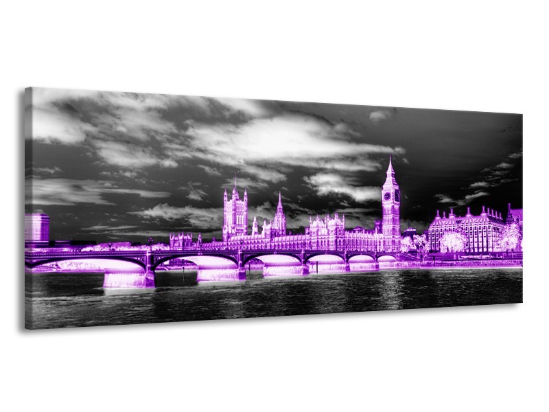 Glasschilderij Engeland, London | Paars, Zwart, Wit | 145x58cm 1Luik