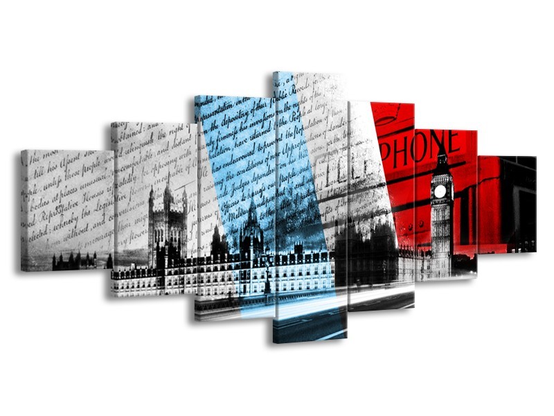 Glasschilderij Engeland, London | Zwart, Blauw, Rood | 210x100cm 7Luik