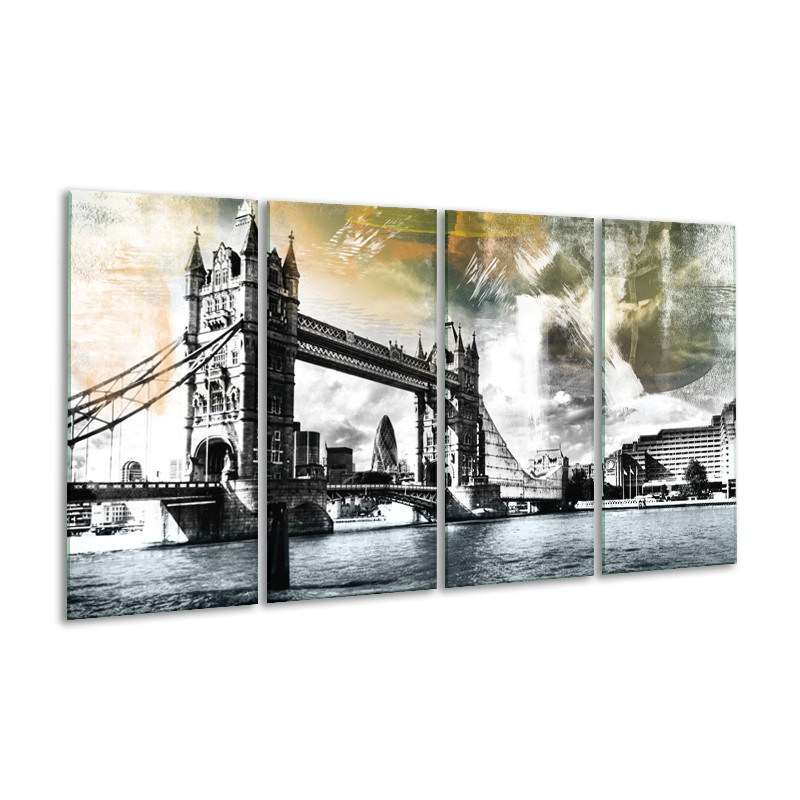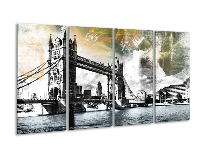 Glasschilderij Engeland, London | Zwart, Grijs, Groen | 160x80cm 4Luik
