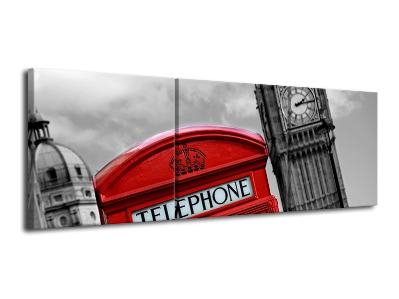 Glasschilderij Engeland, London | Zwart, Wit, Rood | 120x40cm 3Luik