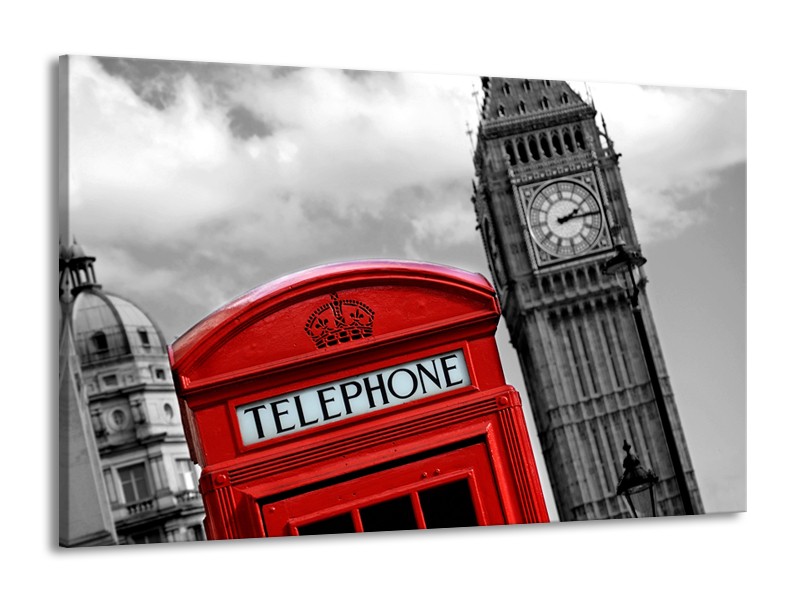 Glasschilderij Engeland, London | Zwart, Wit, Rood | 140x90cm 1Luik